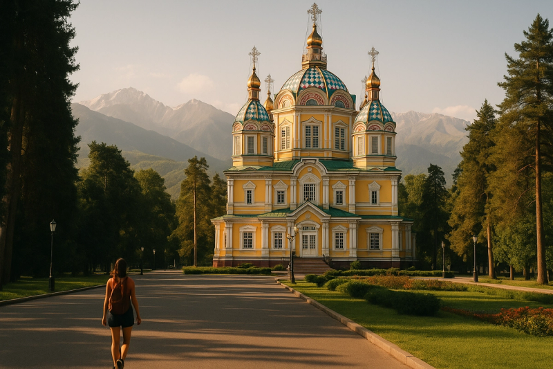 Don’t do too much on day one. That was my first smart move, by accident honestly. I landed, checked in, freshened up, and just explored central Almaty slowly. Panfilov Street is one of those easy pleasant walking stretches where you can settle into the city. Zenkov Cathedral was beautiful in a quiet way, and the park around it had that relaxed local energy, not just tourist noise. Then I walked toward Arbat, watched street activity, grabbed coffee, and had a basic meal that was cheaper than expected.¶