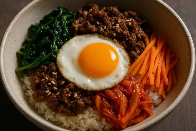 - Something crunchy (cucumber salad, kimchi, slaw)