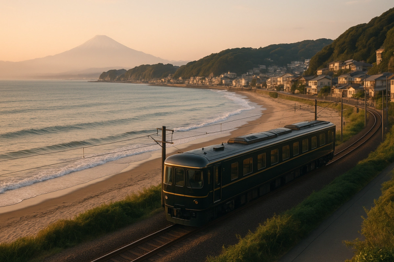 - Ibusuki no Tamatebako (Kagoshima) – black & white exterior train, pretty seaside views